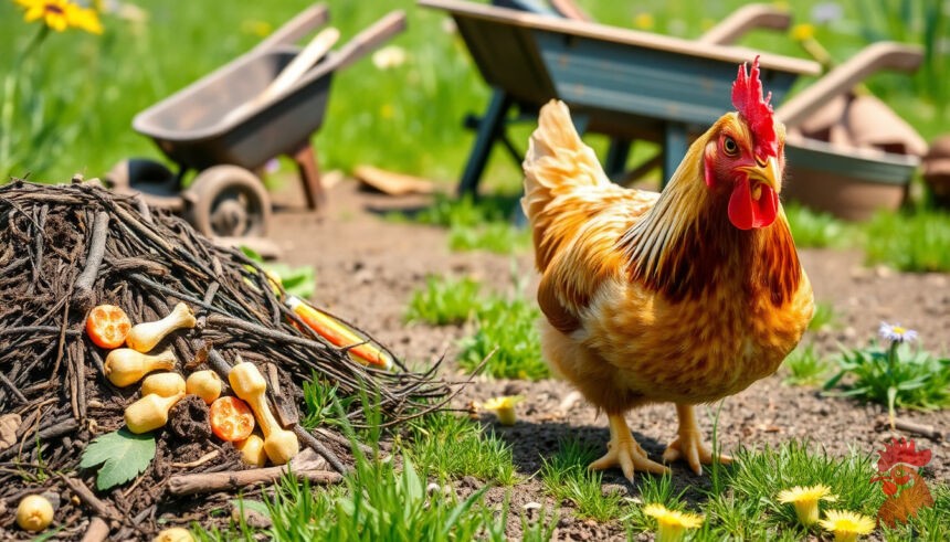 Компост — это то, где куры раскрываются на полную. Они как живые миксеры: кидаете в кучу кухонные очистки, траву или листья, а они всё перелопачивают. Заодно едят жуков и добавляют свой помёт, превращая отходы в чёрное золото для грядок быстрее, чем вы успеете моргнуть.