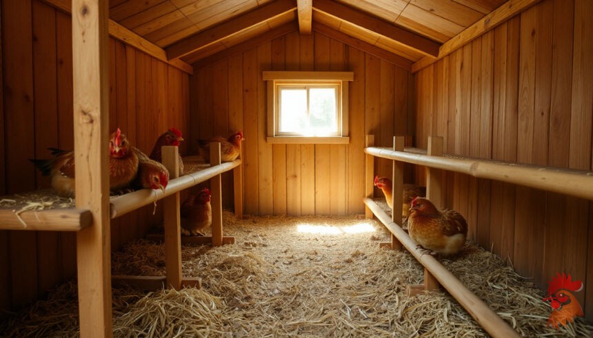 Освещение тоже играет роль. Куры любят свет, но не прямые солнечные лучи. Поставьте окна так, чтобы внутрь попадало достаточно дневного света, но не было сквозняков. А зимой, когда дни короткие, можно добавить лампу, чтобы продлить световой день до 12-14 часов — это важно для яйценоскости.