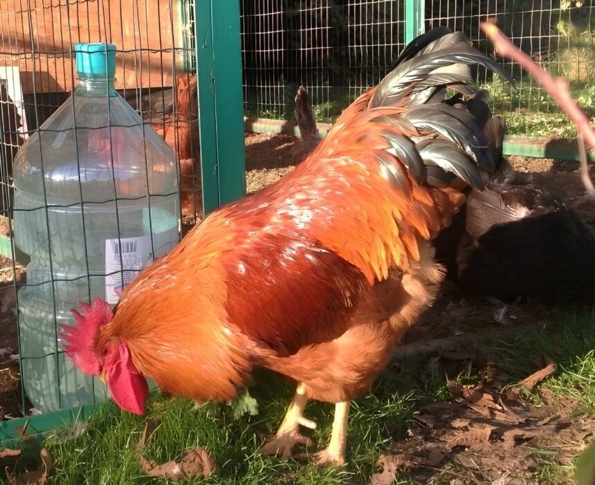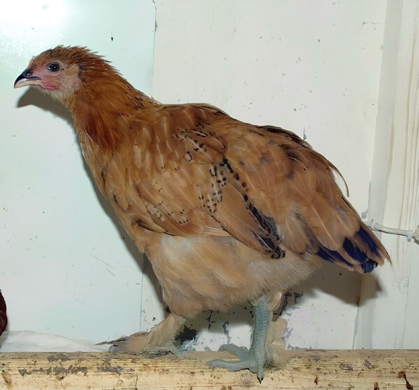 Гребень у Зеленоножки обычно простой, ярко-красный, среднего размера, что гармонирует с их общим обликом. Клюв небольшой, слегка изогнутый, а глаза живые, с янтарным или оранжевым оттенком. Петухи отличаются более пышным хвостом и яркими перьями на шее, которые переливаются на солнце. Вес взрослых особей варьируется: куры достигают 1,8–2,2 кг, а петухи – до 2,5–3 кг. Это делает их не слишком крупными, но вполне подходящими для мясного направления.