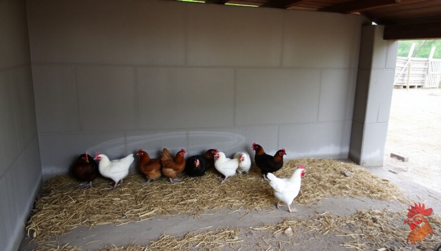 Бетонные курятники встречаются нечасто, но о них стоит упомянуть. Обычно из бетона делают пол или фундамент, но некоторые заливают и стены. Это прочно, долговечно и не боится ни воды, ни огня. Бетонный пол, кстати, спасает от крыс и мышей — они его не прогрызут, как дерево. А еще он легко моется, что для гигиены курятника огромный плюс.