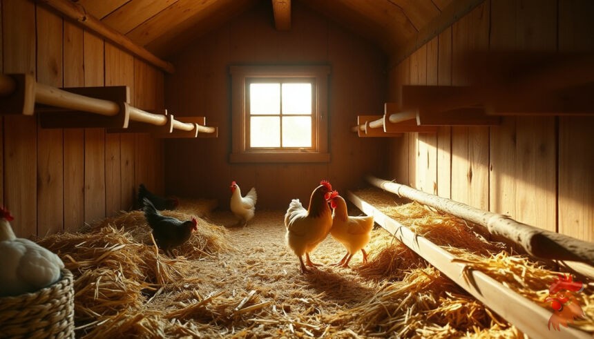 Держите курятник сухим и теплым, особенно зимой. Температура не должна опускаться ниже 10-12°C, а влажность — превышать 60%. Хорошая вентиляция тоже важна, но избегайте сквозняков. Подстилка из соломы или опилок должна быть сухой и регулярно меняться.