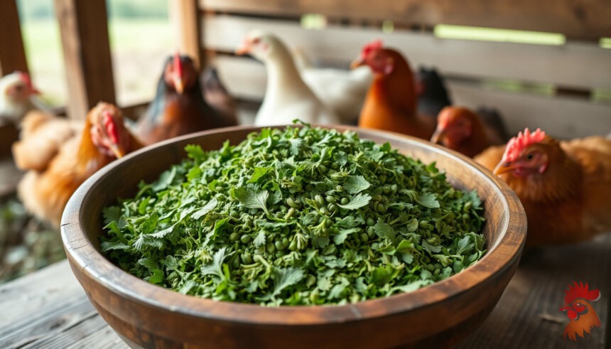 Если вы предпочитаете натуральные добавки, попробуйте травяную муку из крапивы или люцерны. Эти травы богаты минералами и витаминами, а куры их охотно едят. Только убедитесь, что травы собраны в экологически чистом месте, вдали от дорог.