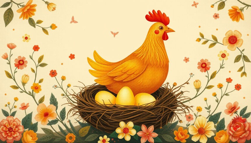 Куры не просто жили рядом с человеком — они проникли в нашу культуру. Вспомните сказки: Курочка Ряба, которая снесла золотое яйцо, или петушок, который всех будил своим «ку-ка-ре-ку». Эти образы не случайны. В фольклоре куры часто символизировали плодородие, достаток и домашний очаг. Они были такими же «жителями» дома, как и люди.